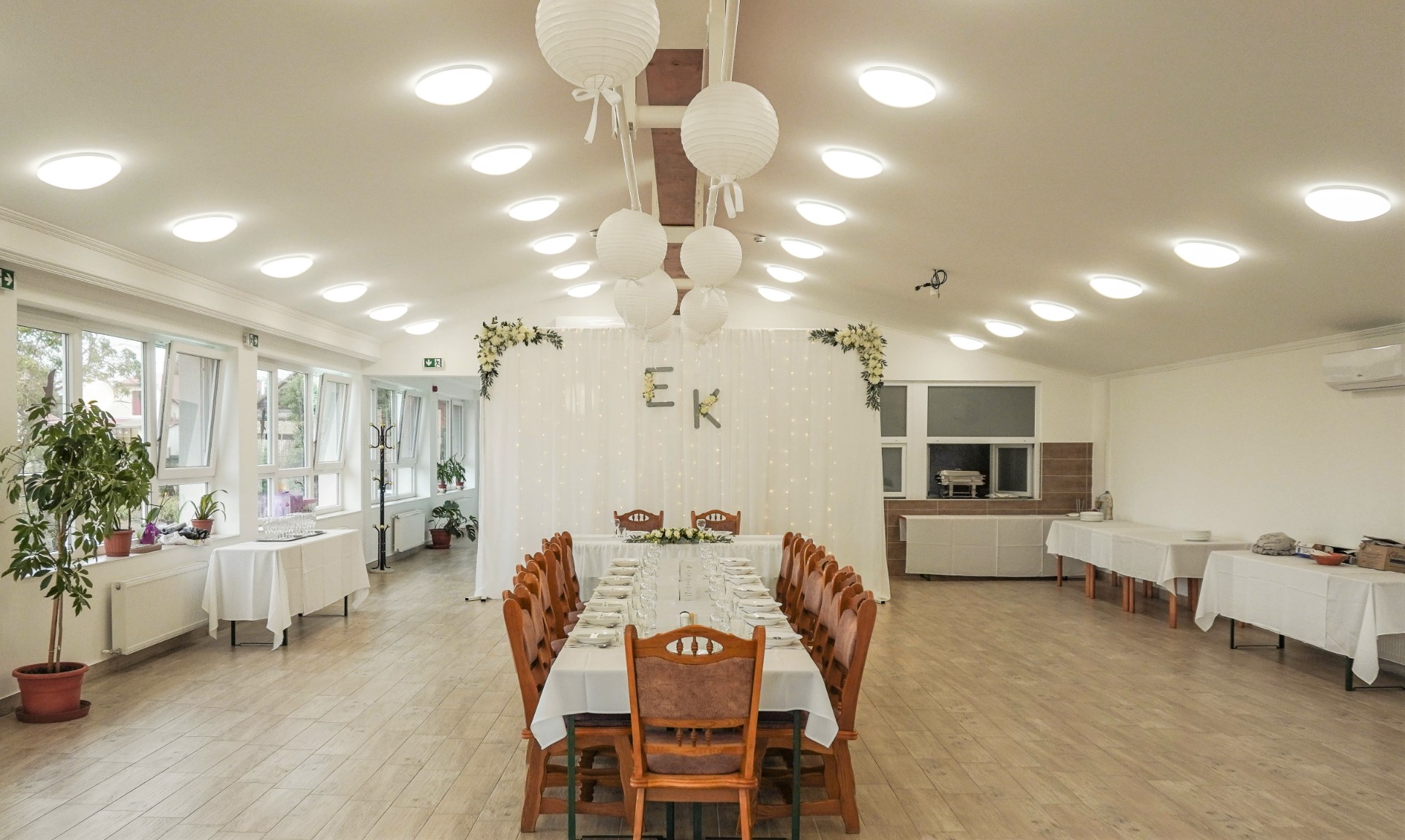 Konferenciatermükben 80 fő részére tudunk kényelmes helyet biztosítani, mely modern hang- és vetítéstechnikai eszközökkel felszerelt. A hely kiválóan alkalmas esküvők, születésnapok, családi rendezvények, konferenciák, csendes hetek megrendezésére.